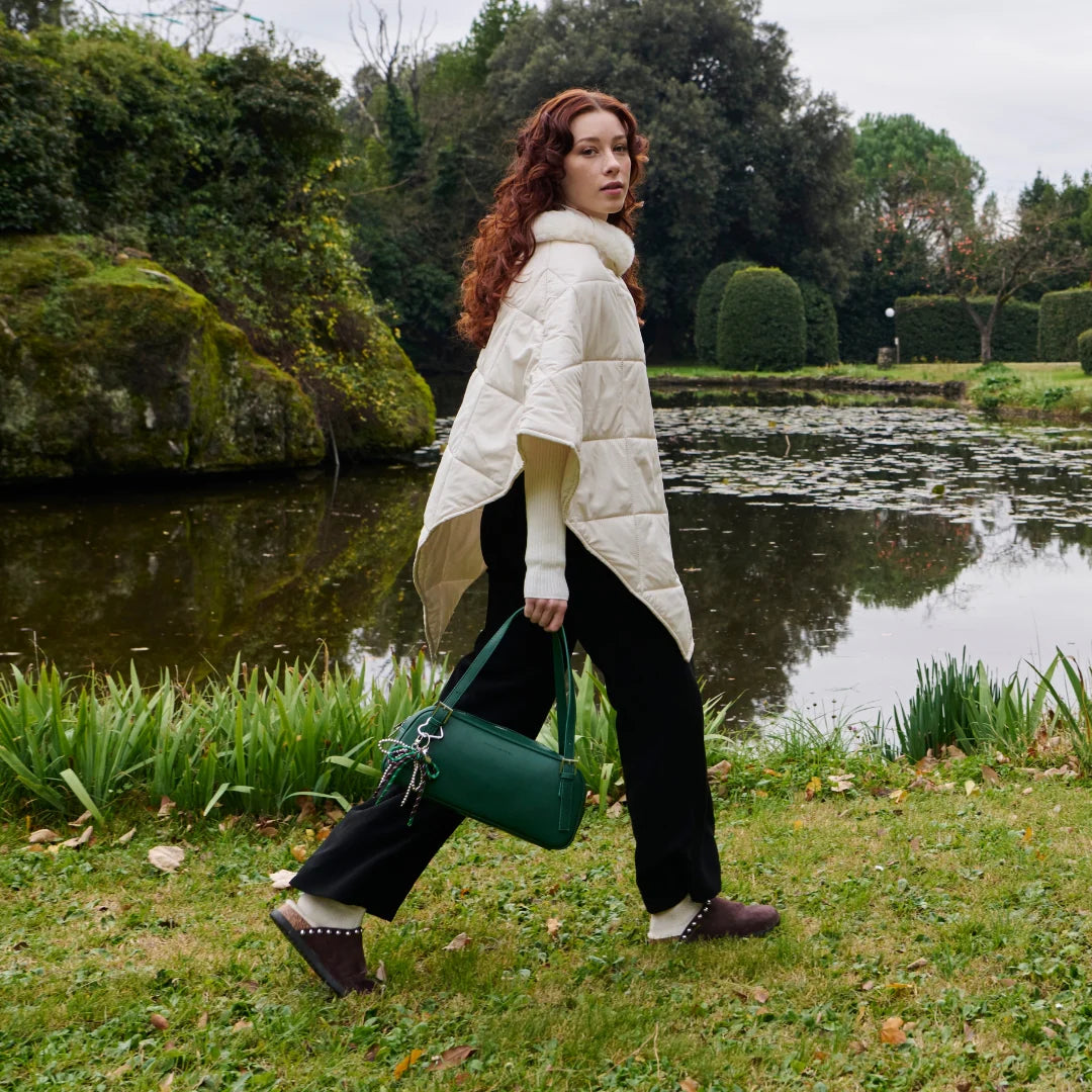Il sabot con borchie marrone rappresenta l’equilibrio perfetto tra comfort e raffinatezza. Realizzato in eco-pelle effetto camoscio e decorato con luminose borchie argento, questo modello unisce personalità e stile senza rinunciare alla comodità. L’interno in eco-pelliccia panna è soffice e caldo, pensato per accompagnare i momenti di relax ma anche per donare benessere durante l’uso quotidiano. La suola in PVC con inserti in sughero assicura resistenza e praticità, mentre la tonalità marrone regala un tocco intramontabile e facilmente abbinabile. Confezionato in un’elegante gruccia nera in cartoncino rigido, è la scelta ideale per chi cerca una calzatura confortevole e al tempo stesso sofisticata.