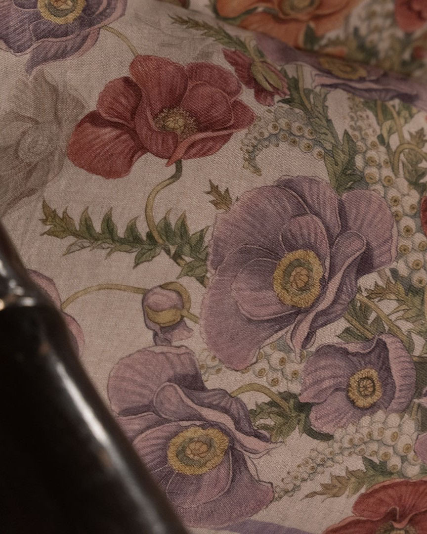 Il paesaggio delle colline toscane al tramonto si tinge di colori caldi e morbidi. Proprio in quel momento il nostro artista ha disegnato l'elegante tovaglia POPPY approfittando del colore naturale del puro lino per avere toni eleganti e coinvolgenti. Un capo per una cena elegante che ti trasporta in una villa di campagna!