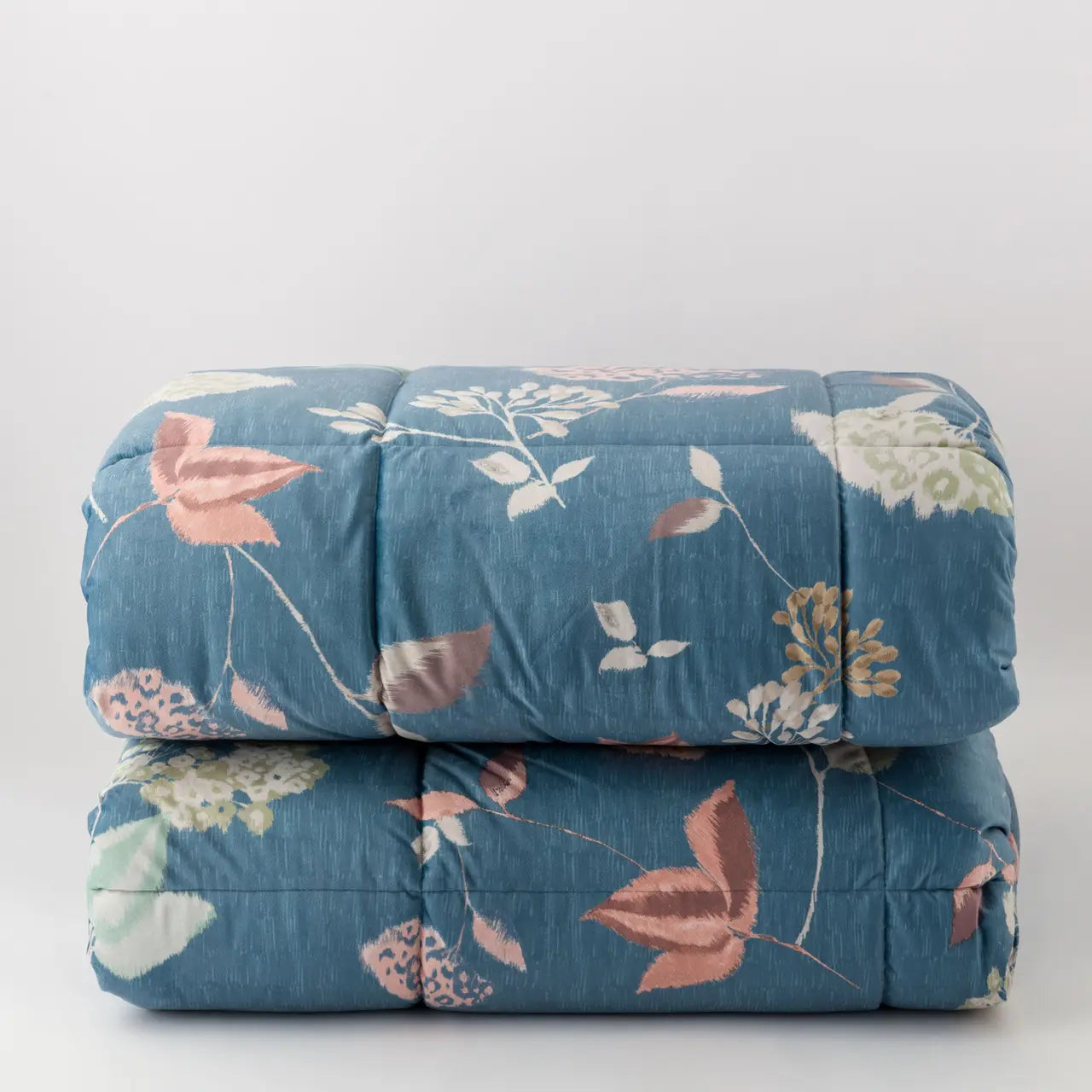 Il velluto del lato frontale, impreziosito da una stampa digitale ad alta definizione, regala una sensazione tattile calda e avvolgente, mentre il retro in puro cotone accoglie la pelle con naturale morbidezza. L’imbottitura generosa da 350 grammi per metro quadro garantisce un comfort ideale durante le notti più fredde, senza appesantire. La trapuntatura a quadri con cornice disegna un ritmo discreto e sofisticato, valorizzato dagli angoli stondati che aggiungono un tocco di delicatezza alla versione matrimoniale da 260x270 cm.